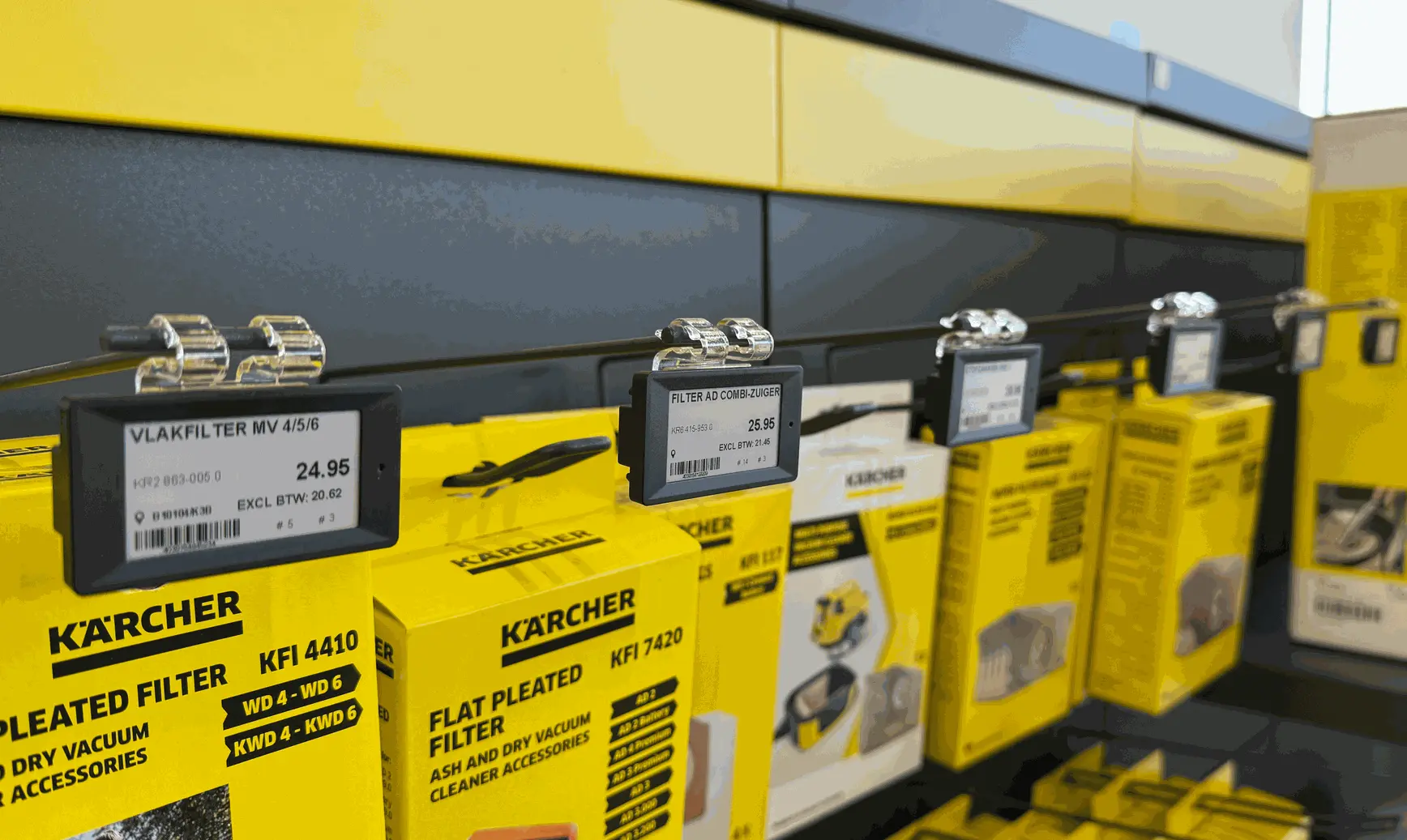 “We hebben eerst elektronische labels geplaatst bij onze merken Kärcher en STIHL,” zegt Jeroen. “Dat gaf ons de kans om technisch te testen, onze medewerkers op te leiden en het systeem intern te verankeren. De positieve reacties lieten niet lang op zich wachten.”